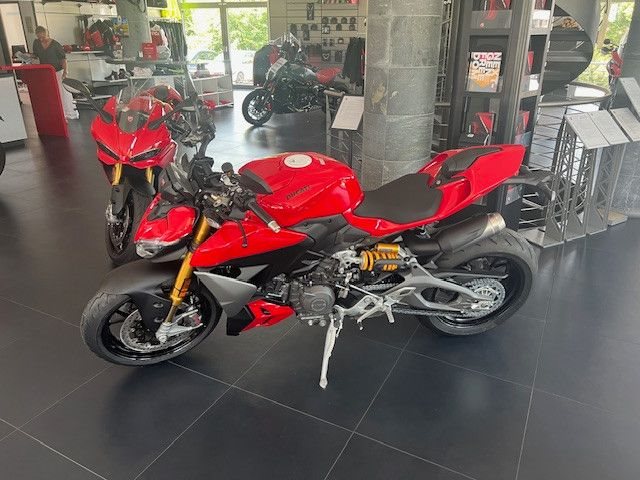 Serienausstattung Ducati Quick Shift (DQS) Up/Down 2.0, Voll-LED-Scheinwerfer mit Daytime Running Light (DRL), automatische Blinkerrückstellung, Lithium-Ionen-Batterie, Ducati Power Launch (DPL), Pit Limiter, Coming-Home-Funktion, Sachs-Lenkungsdämpfer, Einsitzer-Konfiguration.